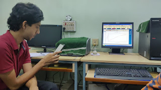 First testing of the anemometer (in Students' office) for data collection by Mr. Pritam Das and Mr. Kashyap Patel.